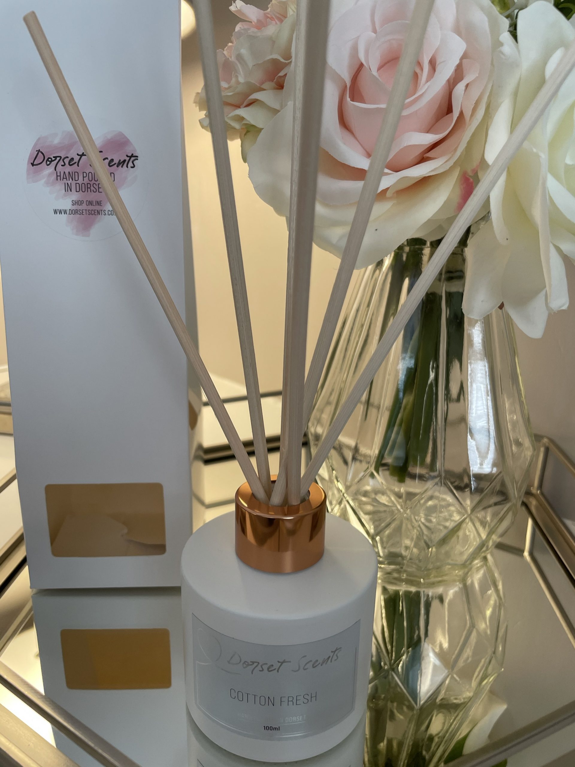 Our stunning brand new Luxury Reed Diffusers have arrived! Our 100ml white diffuser comes with 7 natural rattan reeds and your choice of either a silver or rose gold cap. Packaged up in our white diffuser boxes.