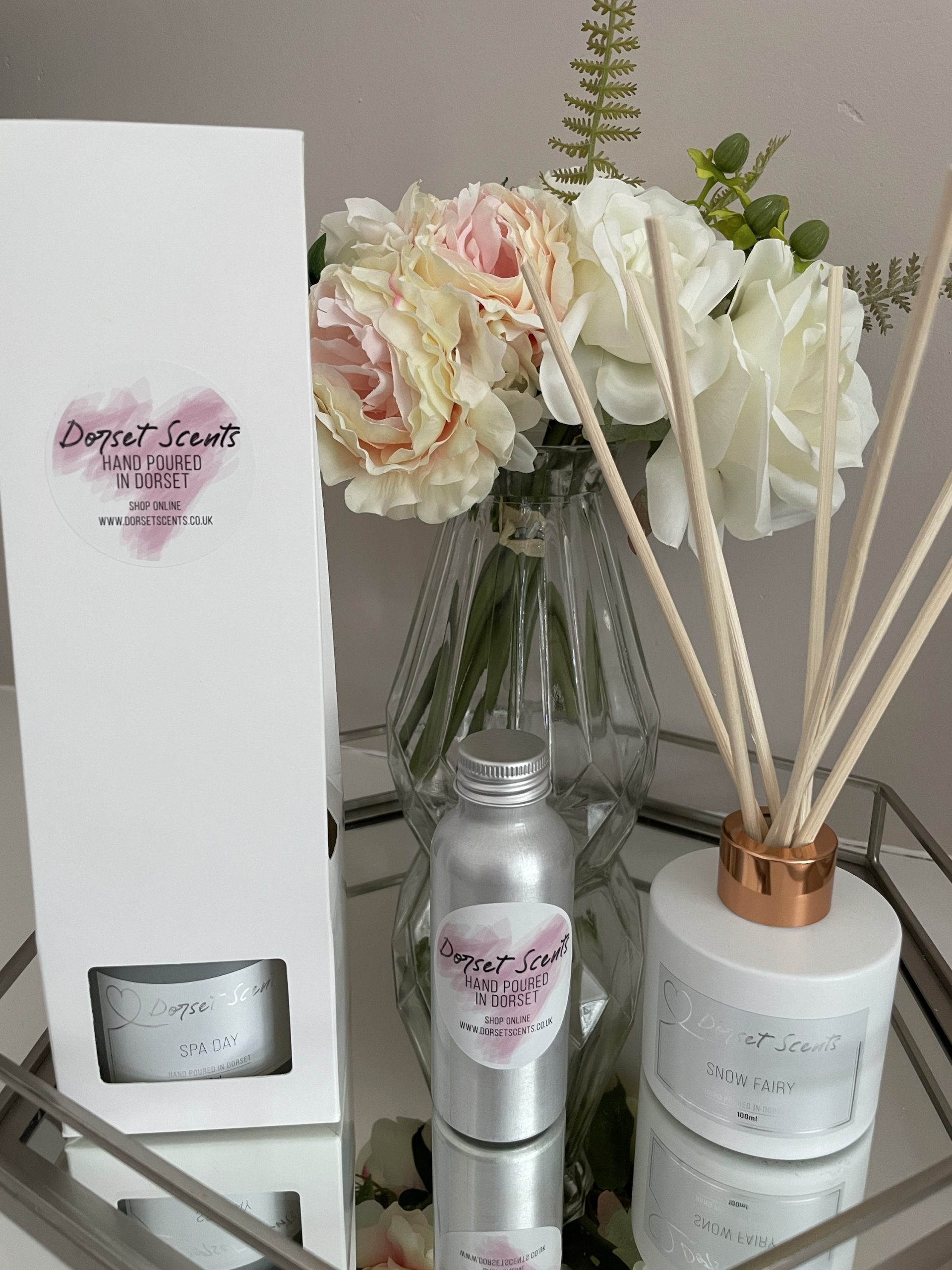 Our refills come in 100ml bottles and with 6 new reeds so you can top up your Dorset Scents Diffuser and you’re ready to go.