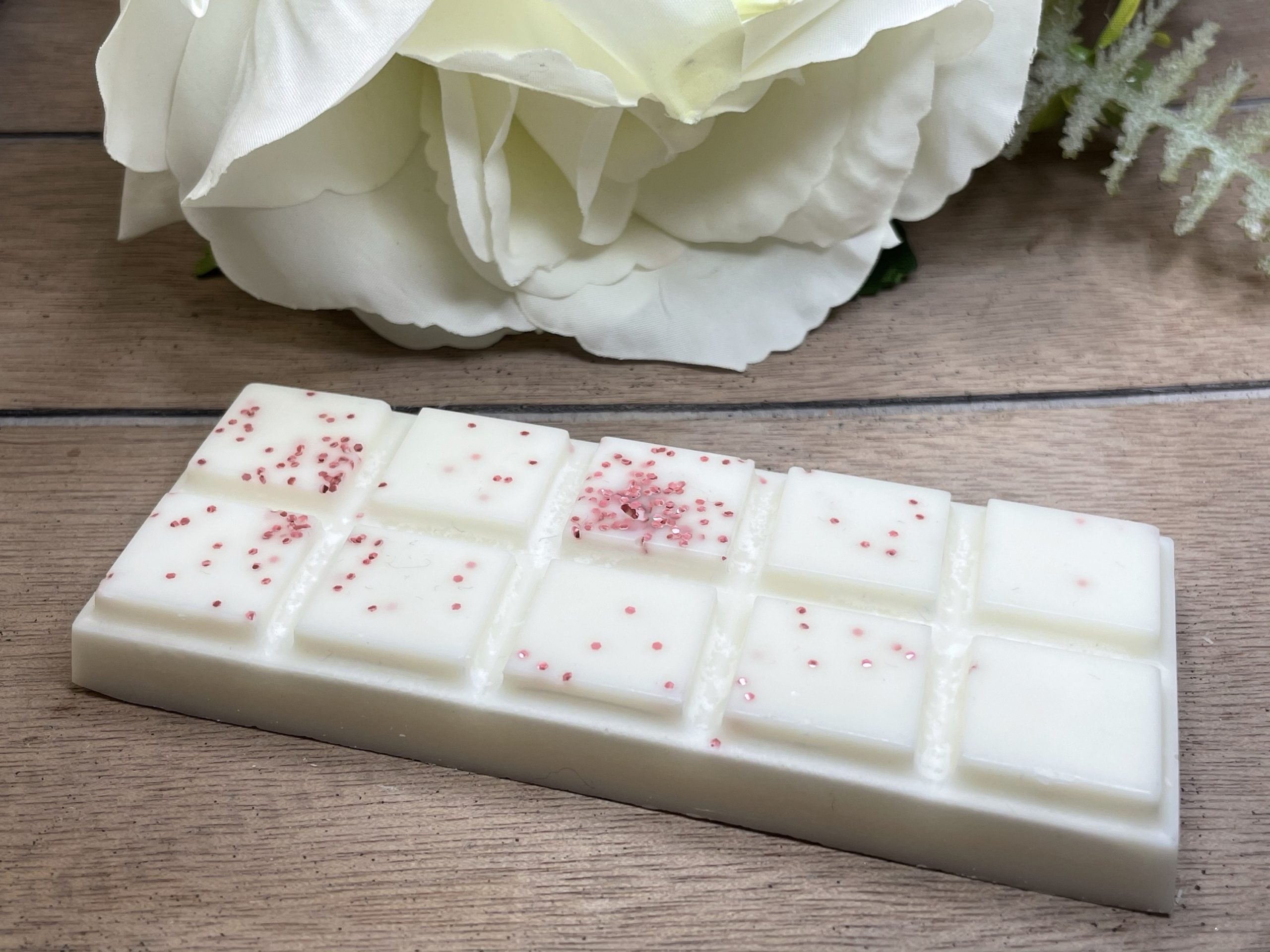 Tiny magical droplets of sunshine sparkling their way through a soft powdery sweet floral bouquet. This is a beautiful sweet soft scent with top notes of apple skin and bergamot, middle notes of lily and rose and base notes of sandalwood, musk, patchouli and vanilla. Devine!! Snap off 2 of the blocks and enjoy!