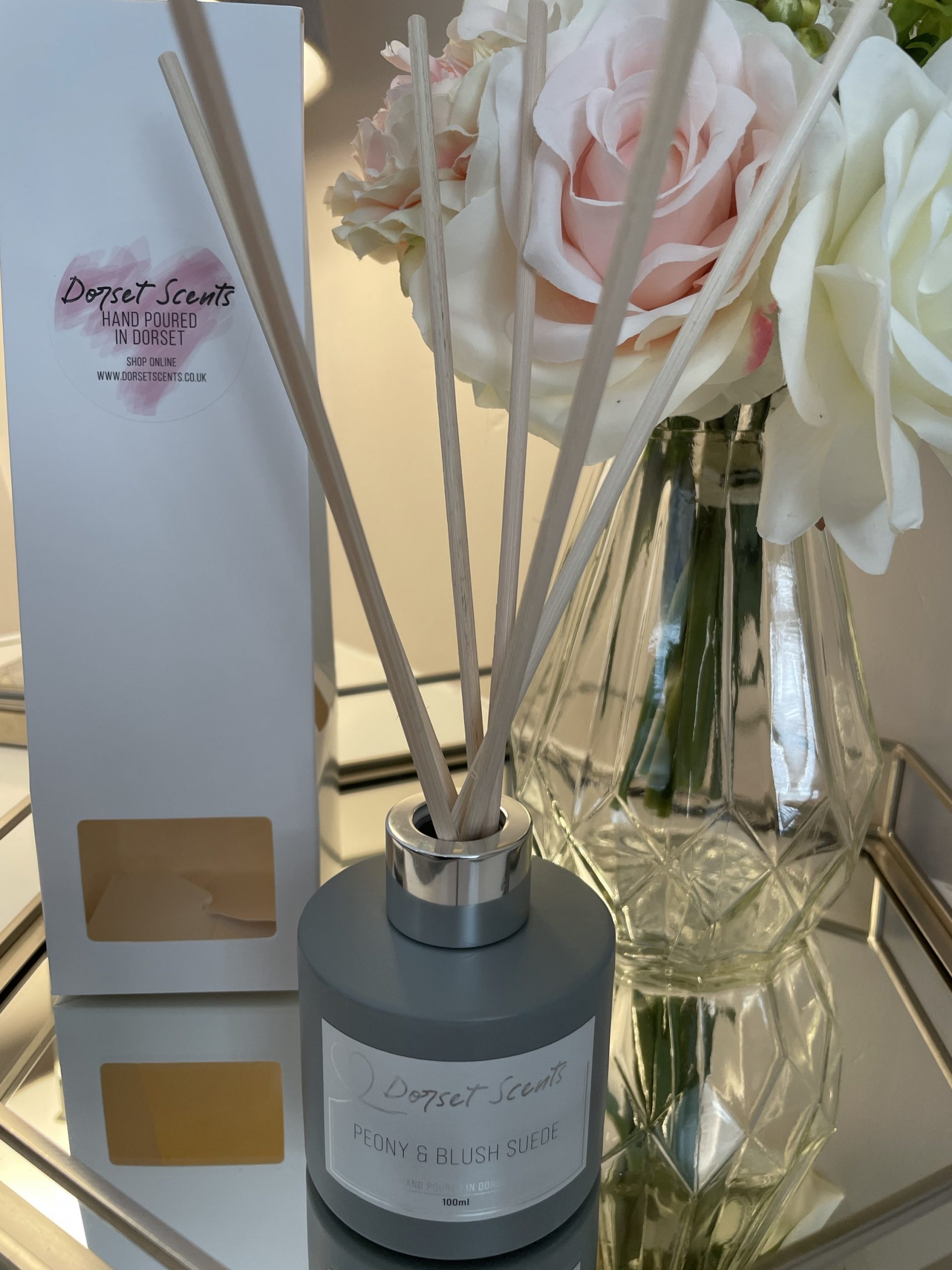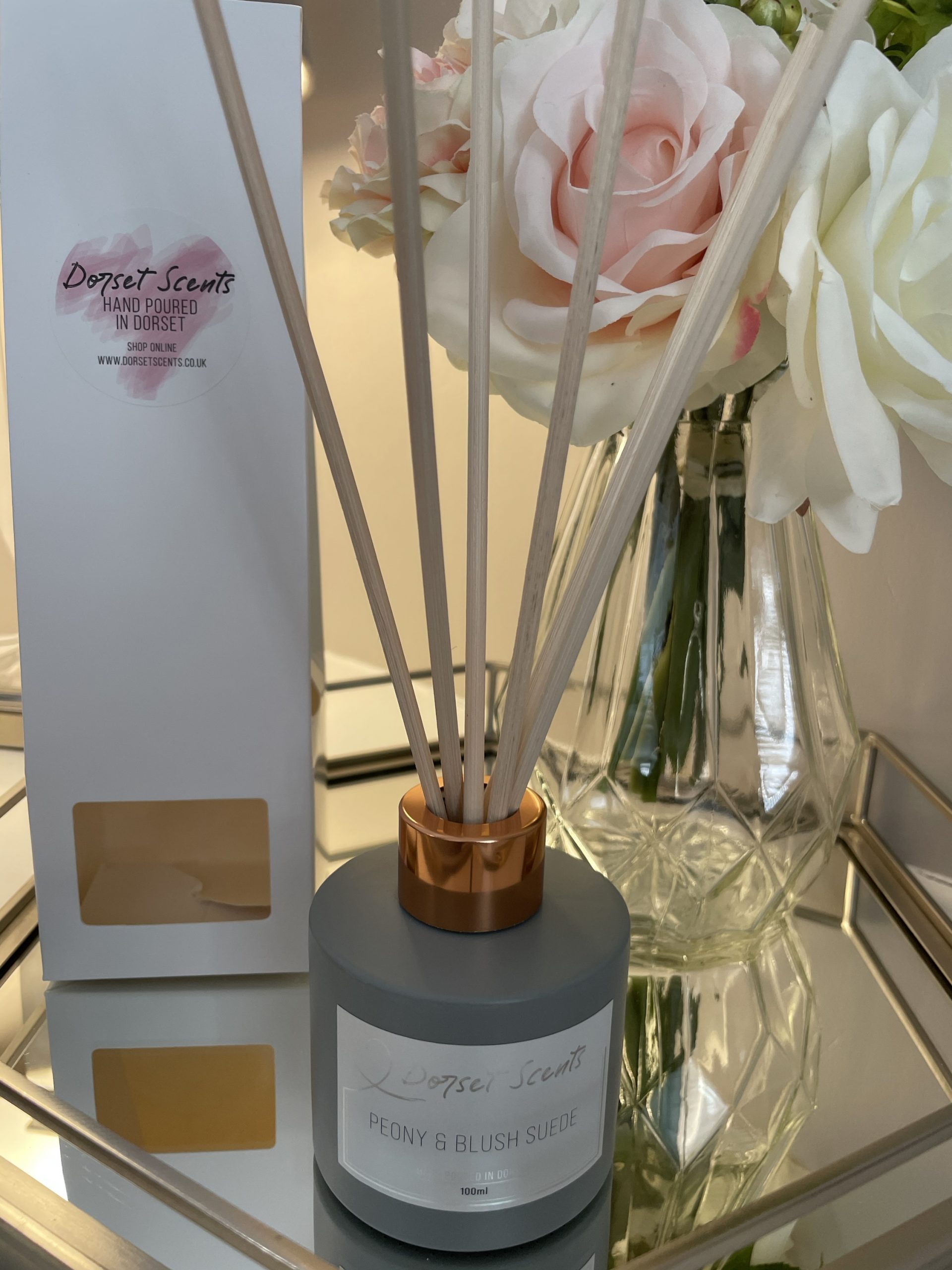 Our stunning brand new Luxury Reed Diffusers have arrived! Our 100ml grey diffuser comes with 7 natural rattan reeds and your choice of either a silver or rose gold cap. Packaged up in our white diffuser boxes.